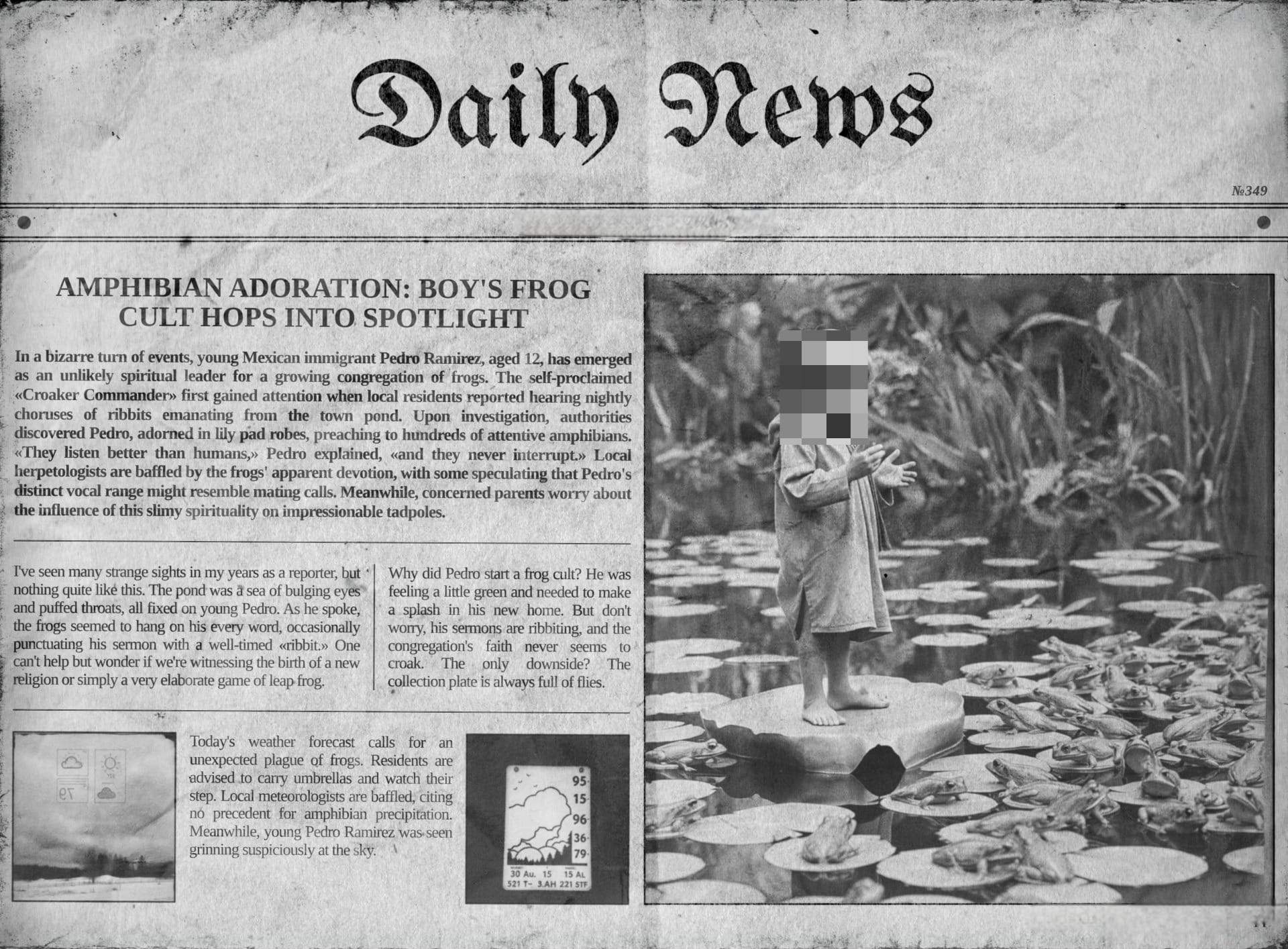 Each initiate must seek and receive the blessing of Pedro, our revered intern and de facto deity of our church. This isn't a physical blessing but an acknowledgment of your dedication to our cause, which you might gain through creative tributes or acts of irony in Pedro's name.